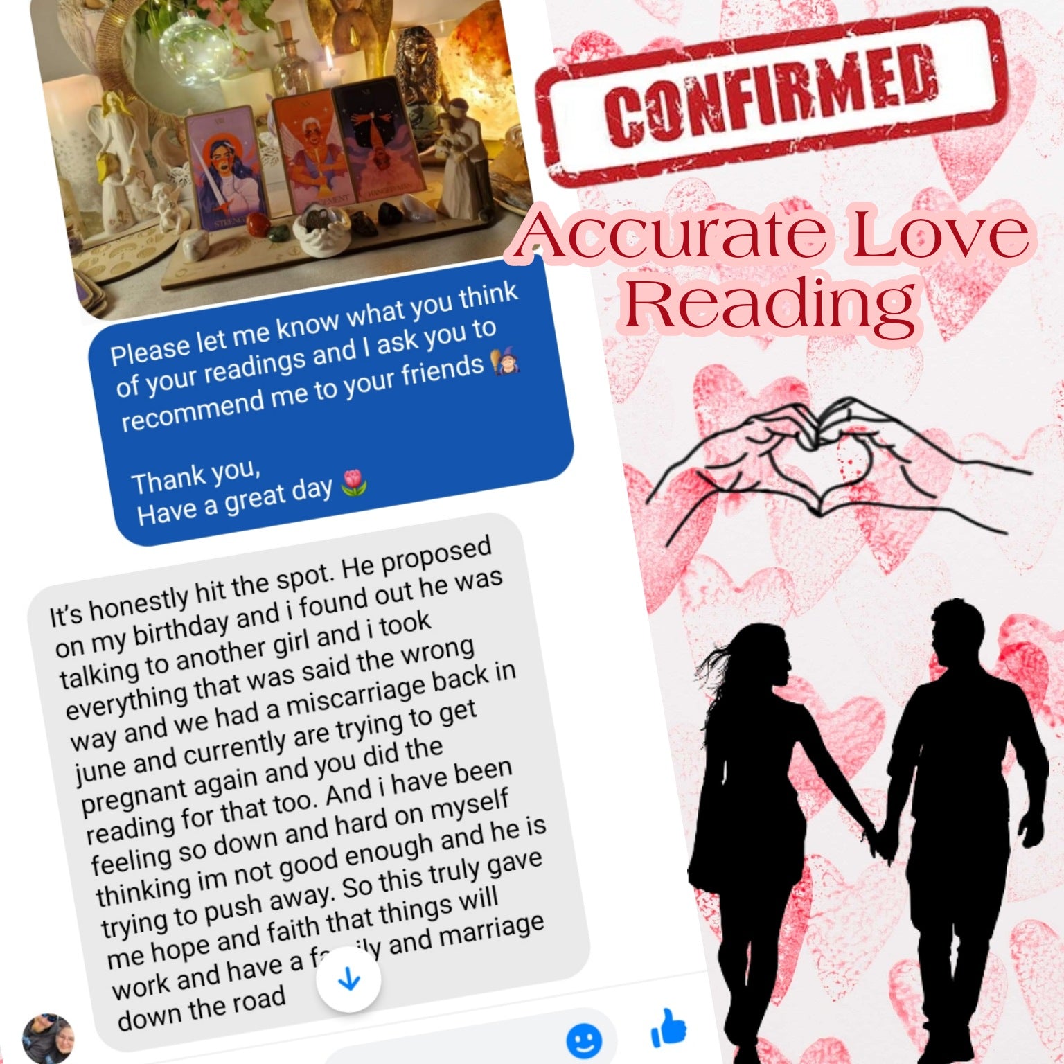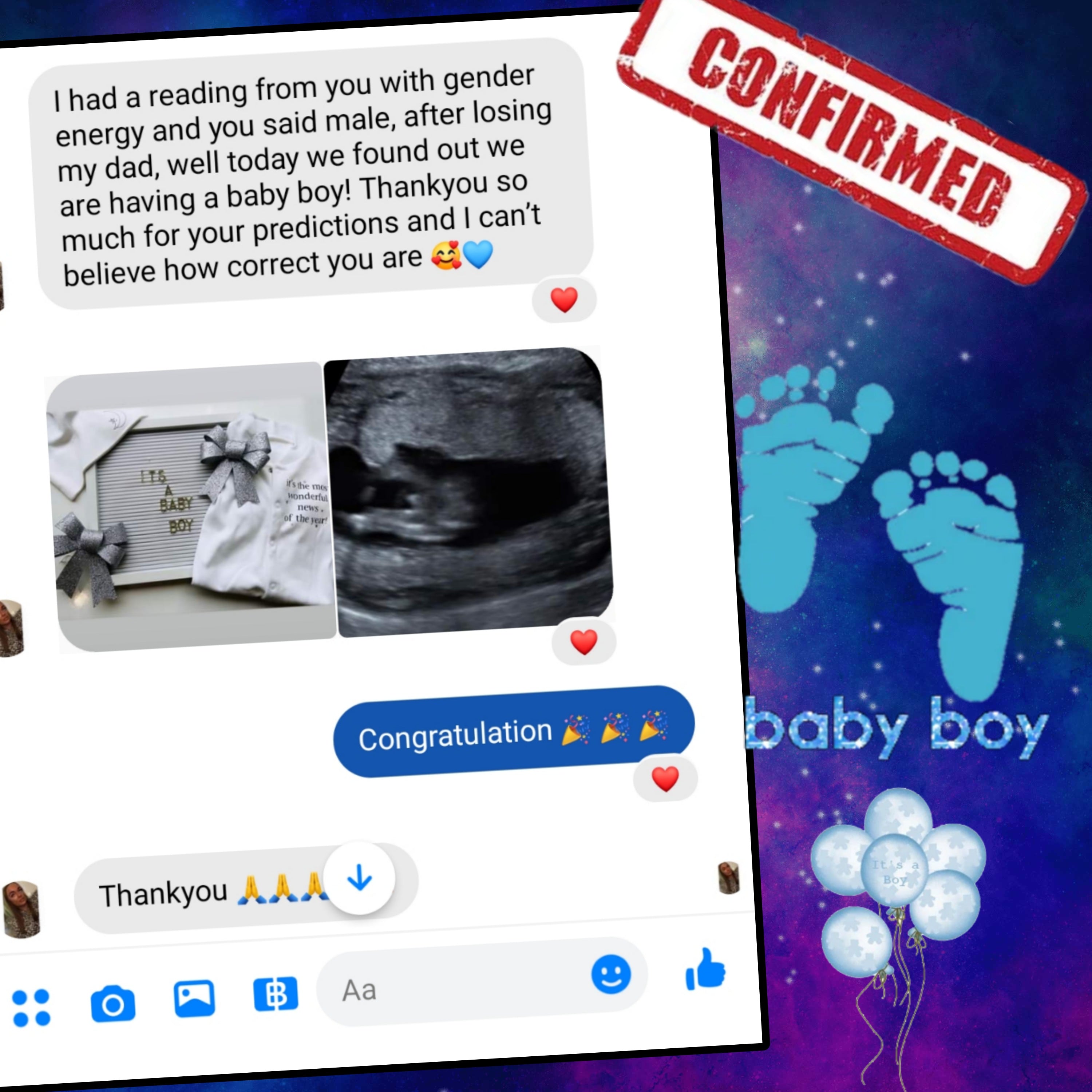 The prediction about the pregnancy and the baby boy was spot on. I’m very happy and grateful for this reading. Highly recommended!